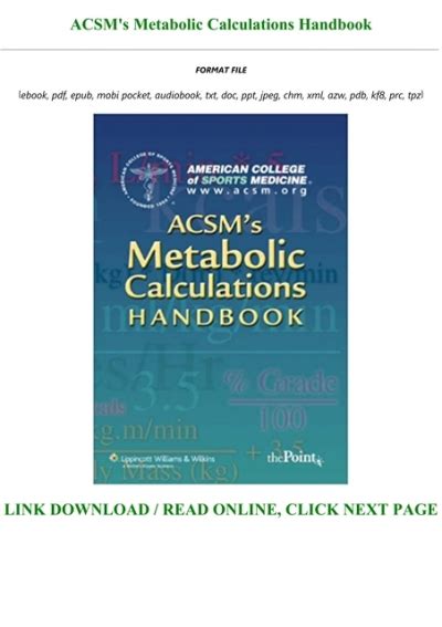 Download Download ACSM s Metabolic Calculations Handbook PDF PDF online is a convenient and frugal way to read Download ACSM s Metabolic Calculations Handbook PDF you love right from the comfort of your own home. Yes, there sites where you can get PDF "for free" but the ones listed below are clean from viruses and completely legal to use.